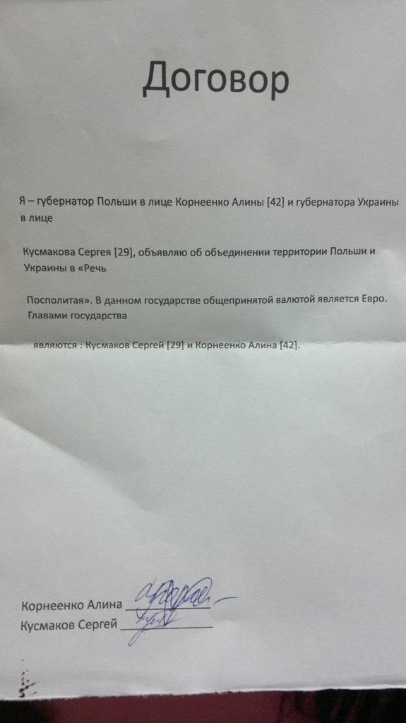 Ходят слухи об объединении Украины и Польши в новую Речь Посполитую, но документального подтверждения не найдено.